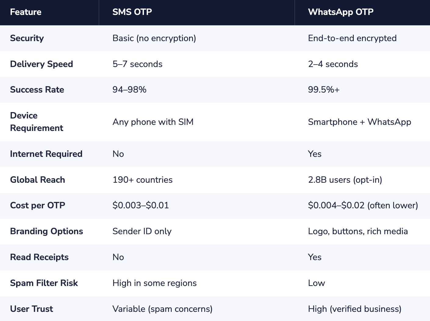 Head-to-Head Comparison: WhatsApp OTP vs SMS OTP