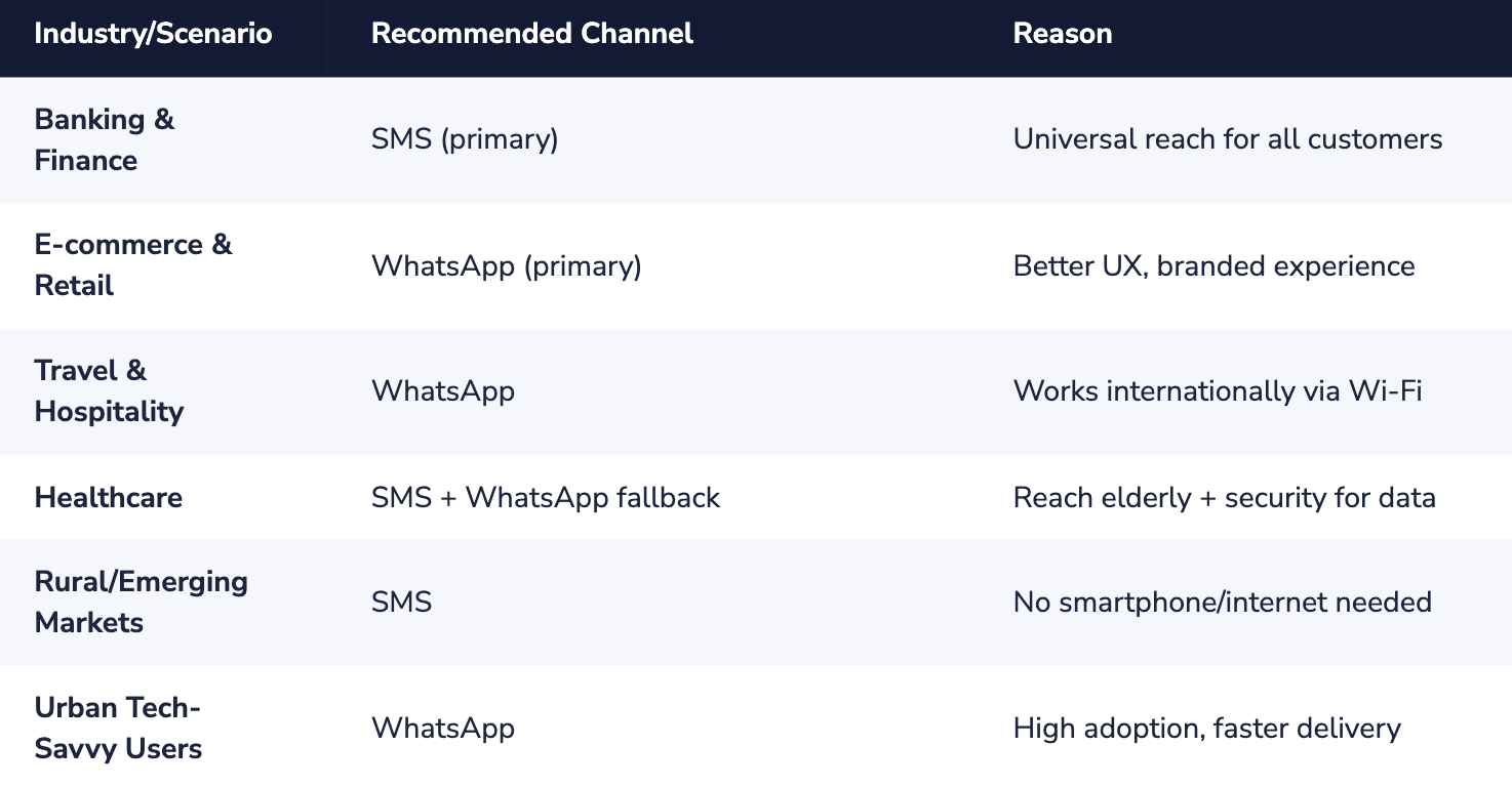The choice between WhatsApp OTP and SMS OTP is not an either/or situation.